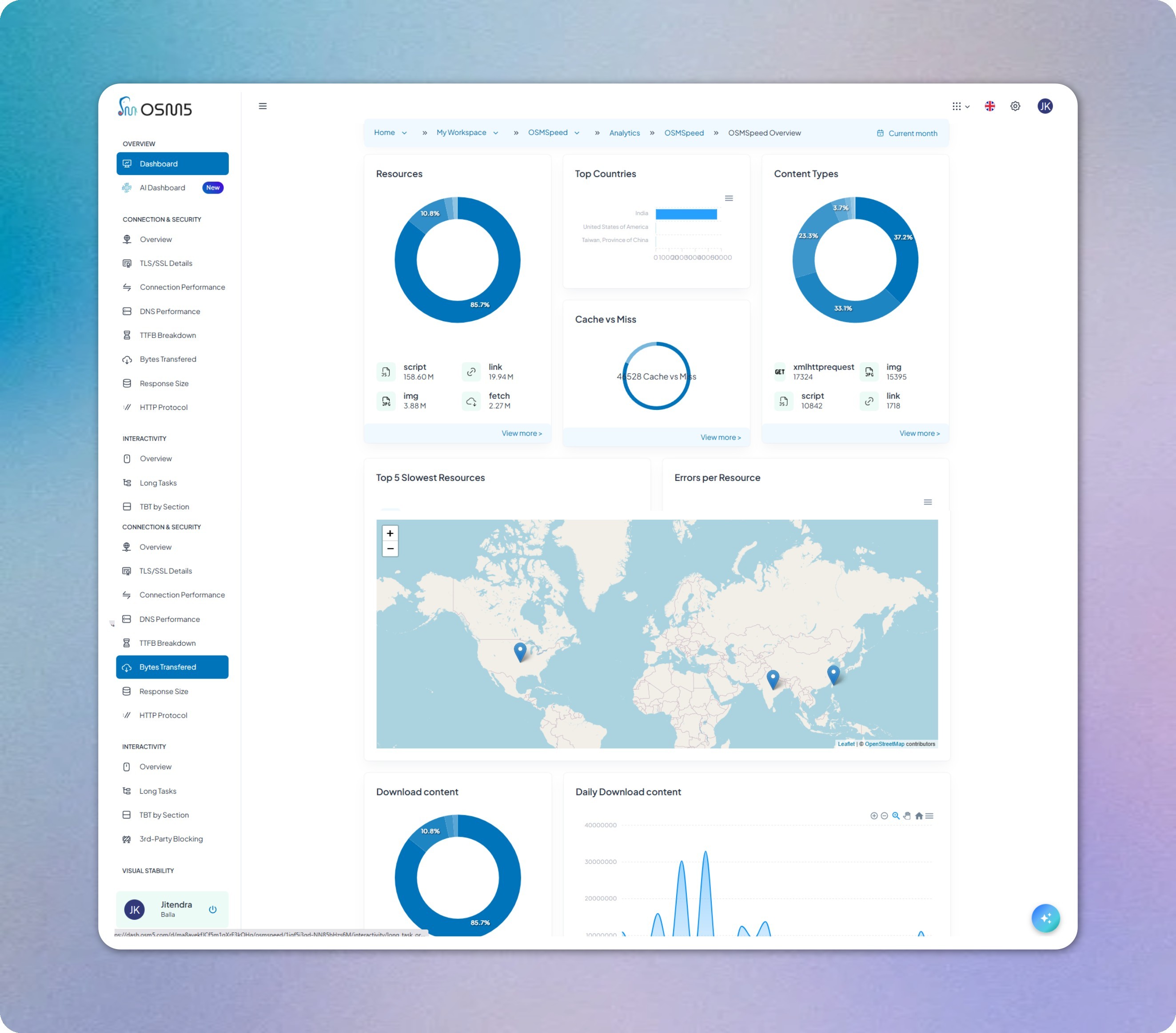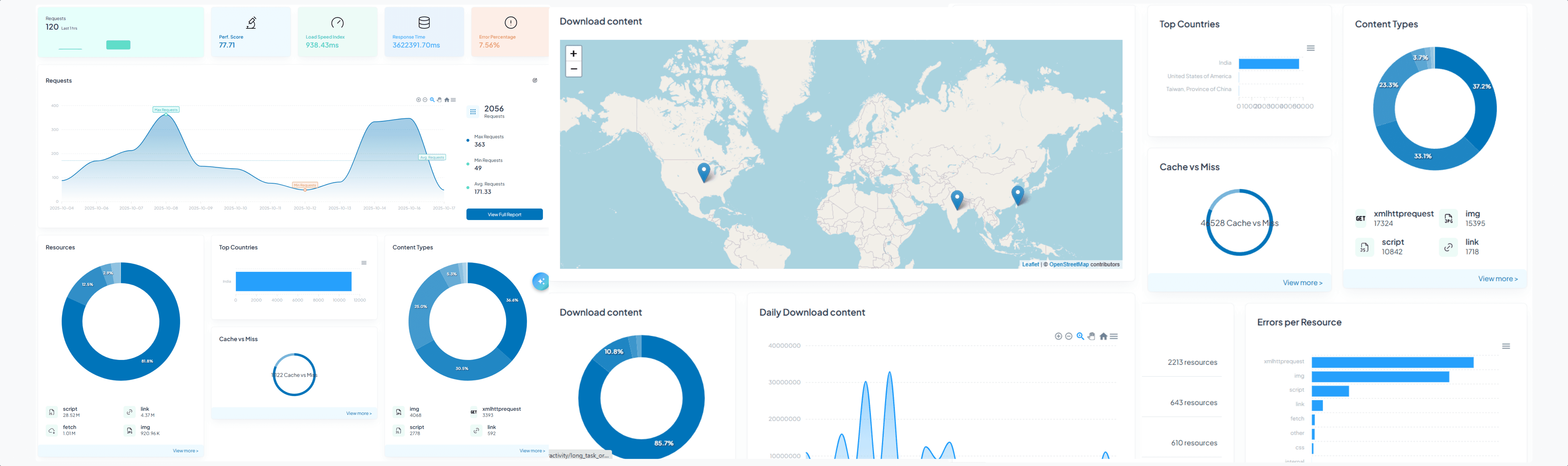 Track Web Vitals, slow resources, errors, and traffic anomalies with 500+ detailed performance reports. One-time setup enables continuous, user-level monitoring and optimization across all devices.