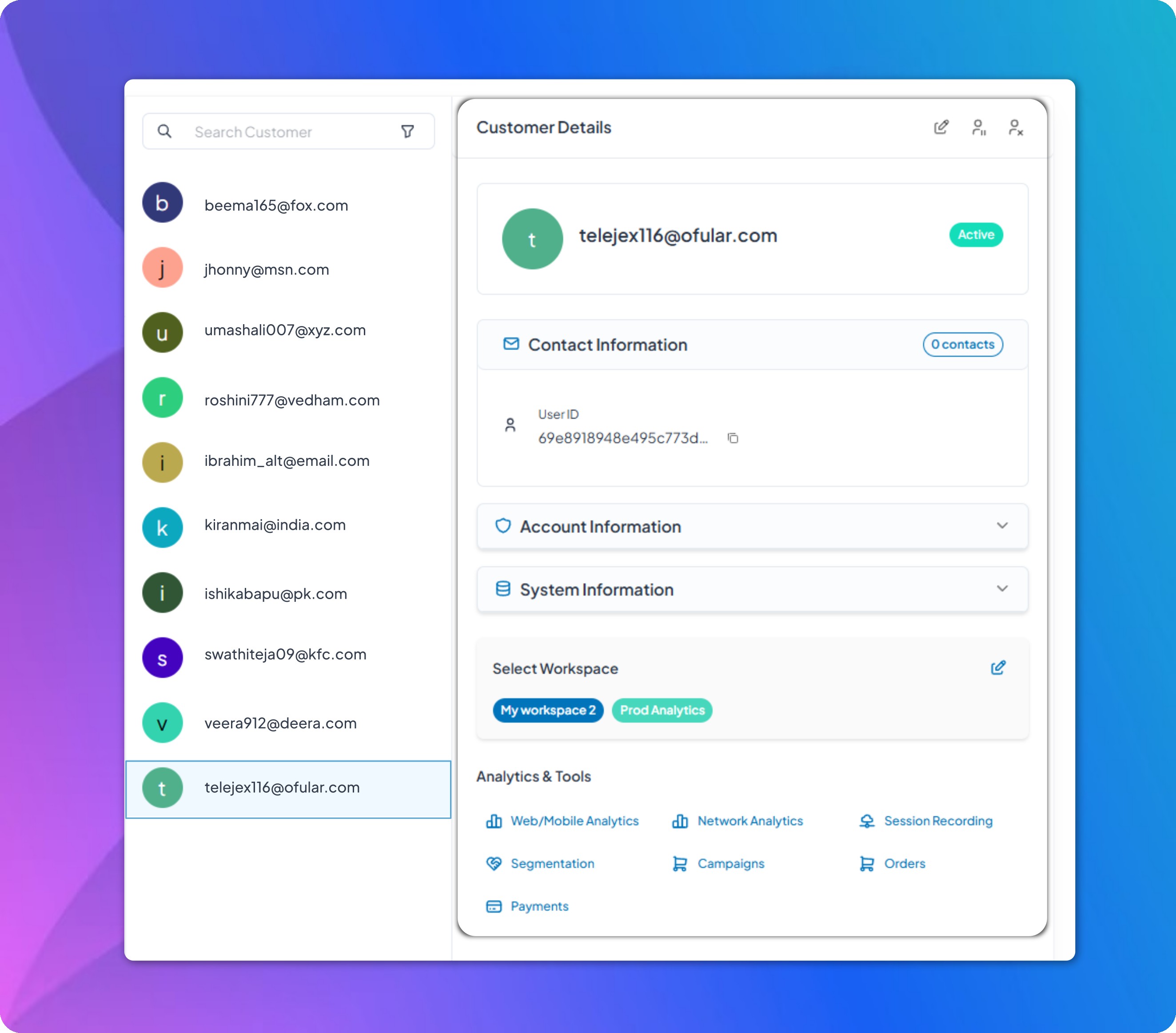 Automatically captures and unifies all customer behaviors in one place. Connects actions across devices, channels, and products without extra setup. Provides a single source of truth for smarter segmentation, campaigns, and analytics.
