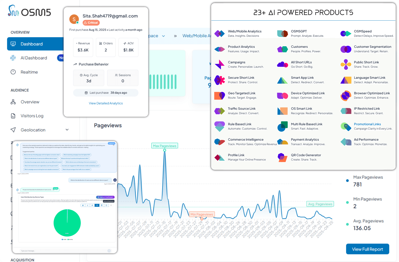 OSM5 Web Analytics delivers real-time, user-level insights across web and mobile with a privacy-first, cookie-less approach. With 800+ reports and OSMAI integration, you get instant answers from plain English queries and effortless, one-time setup tracking.