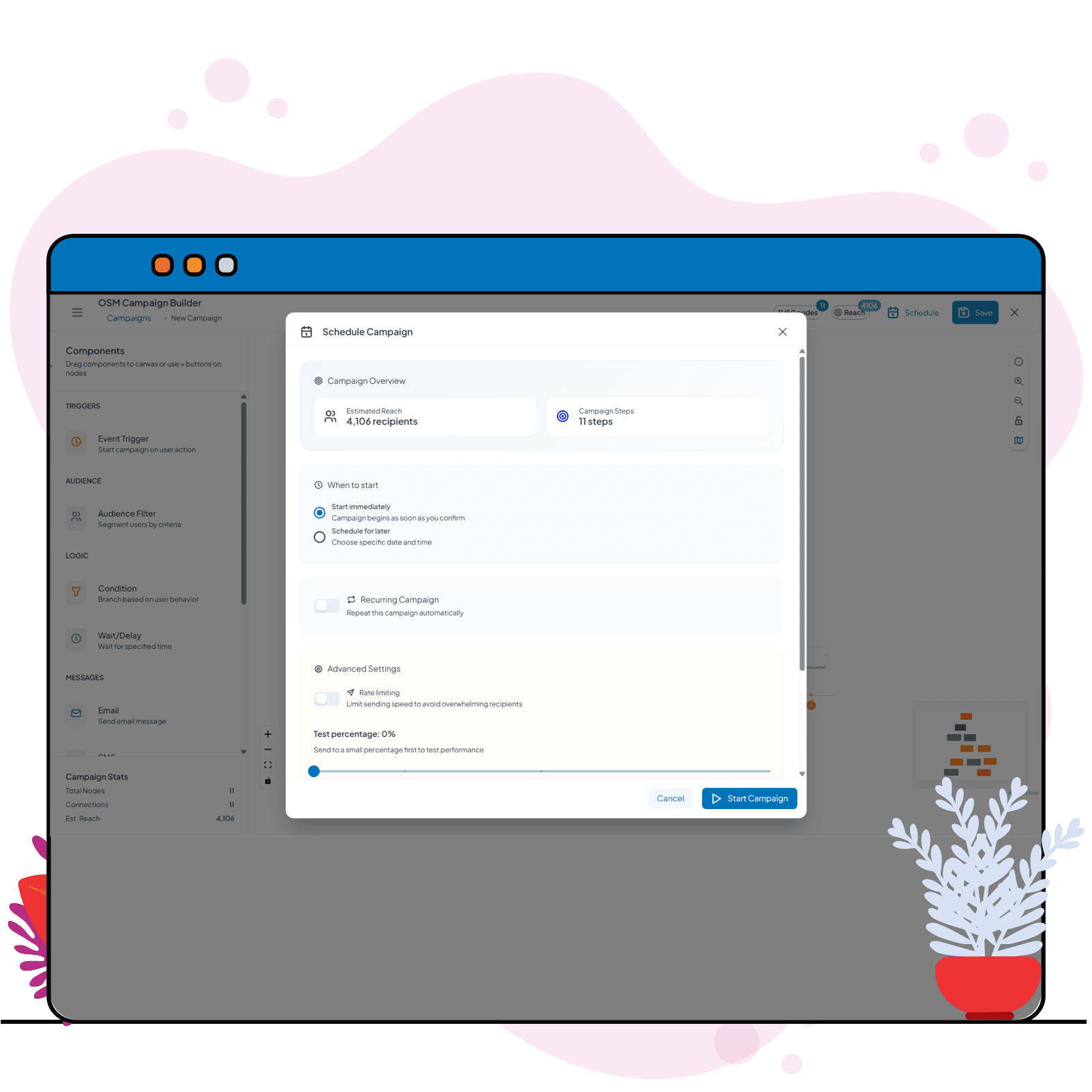 Sophisticated multi-step, multi-channel campaigns without writing code.