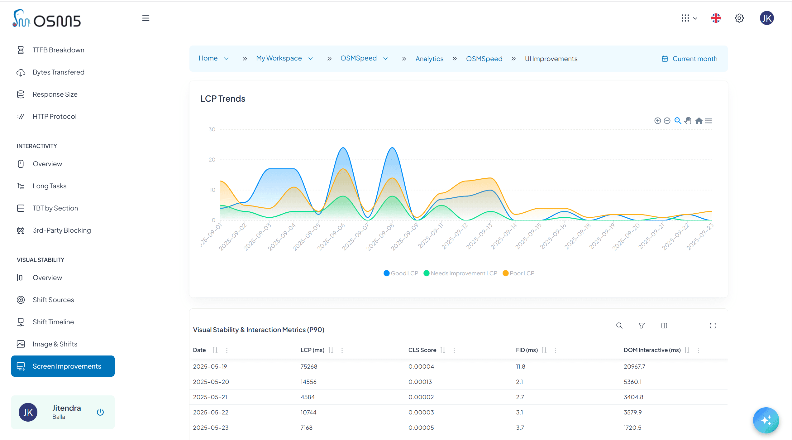 Discover everything you need to monitor, optimize, and scale performance seamlessly. From real user insights and Core Web Vitals tracking to backend monitoring, error detection, and visual stability analysis, OSMSpeed gives you a complete toolkit to deliver faster, more reliable, and user-friendly experiences.